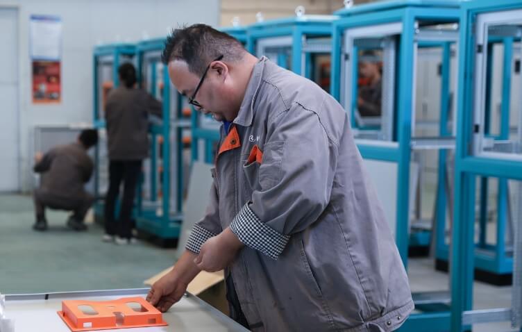 工業機柜即按電氣接線要求將開關設備、測量儀表、電器和輔助設備組裝在機柜中,對生產過程實現控制,且具有保護存放設備、屏蔽電磁干擾等功能。